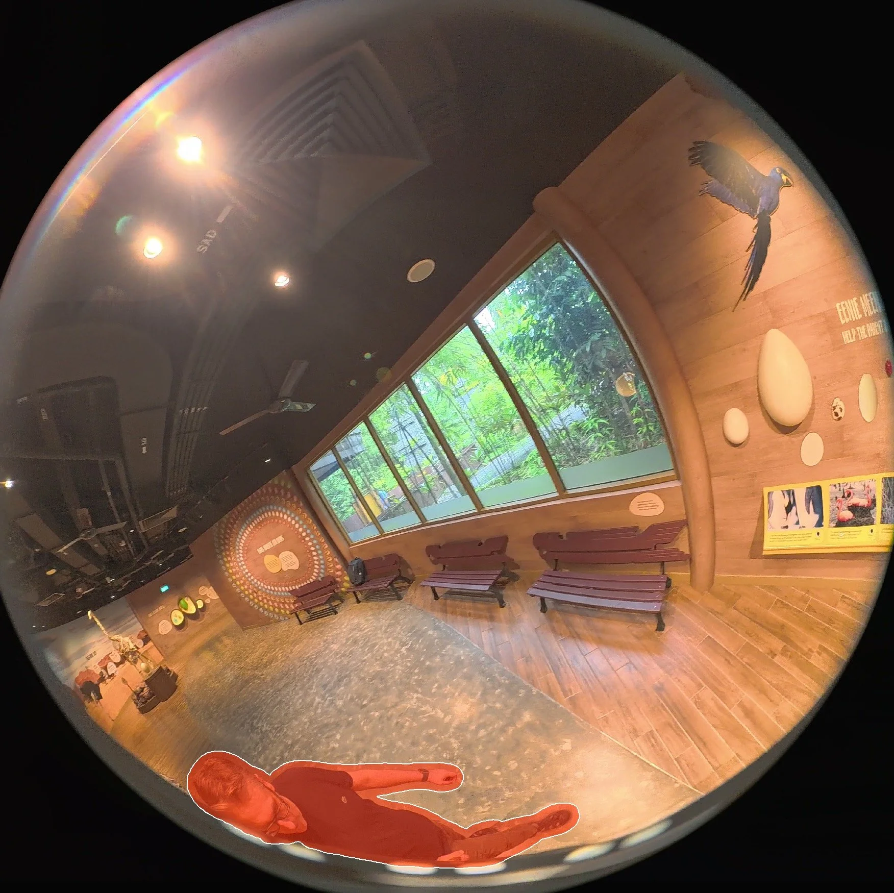 A fisheye frame with a mask (red overlay), removing any unwanted elements (in this case, the operator)